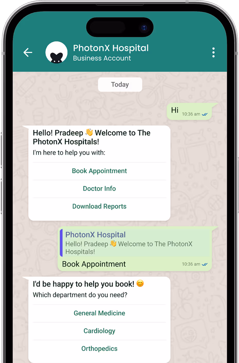 Patients still can't make appointments directly through WhatsApp. Staff checks availability, confirms slots, and follows up by hand.